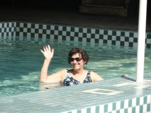 I went into the plane and there the stewardess looked at my ticket and escorted me to that big, wide, wonderful seat with all kinds of things hanging off of it that I could only imagine what they were there for. I tried to appear casual as the stewardess asked if I would like something to drink. I came soooo close to making that Economy Seating remark… “Do you take cash or credit card?” But instead I managed to pause and say ,”I’ll try a rum and coke please.” And like magic it appeared in her hand as she reached over and pulled one of the many platforms out of the side of my seat and sat the drink on it with a small dish of warmed mixed nuts! Wow! Try as I may not to, I still chugged the rum and coke in about two swallows. Before I could place it on the little table she was taking it from me and asking if I would care for another. She shouldn’t have done that so quickly. It started a cycle that consisted of seeing who was the quickest…Was it me drinking the glass dry? Or….was it going to be her making the next drink? It was GAME ON! I stopped at 8 and took time out to eat the great chicken salad with hot bread and washed it down with 3 glasses of Merlot (not the white kind Edge, I’ll just spend a little more time cleaning the dentures!).
